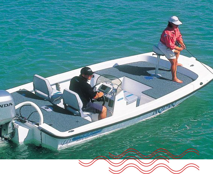 The Kevlacat 5152 Suncoaster is built tough using a moulded GRP hull and deck with a GRP-coated ply timber floor liner featuring a non-skid finish (carpet optional).